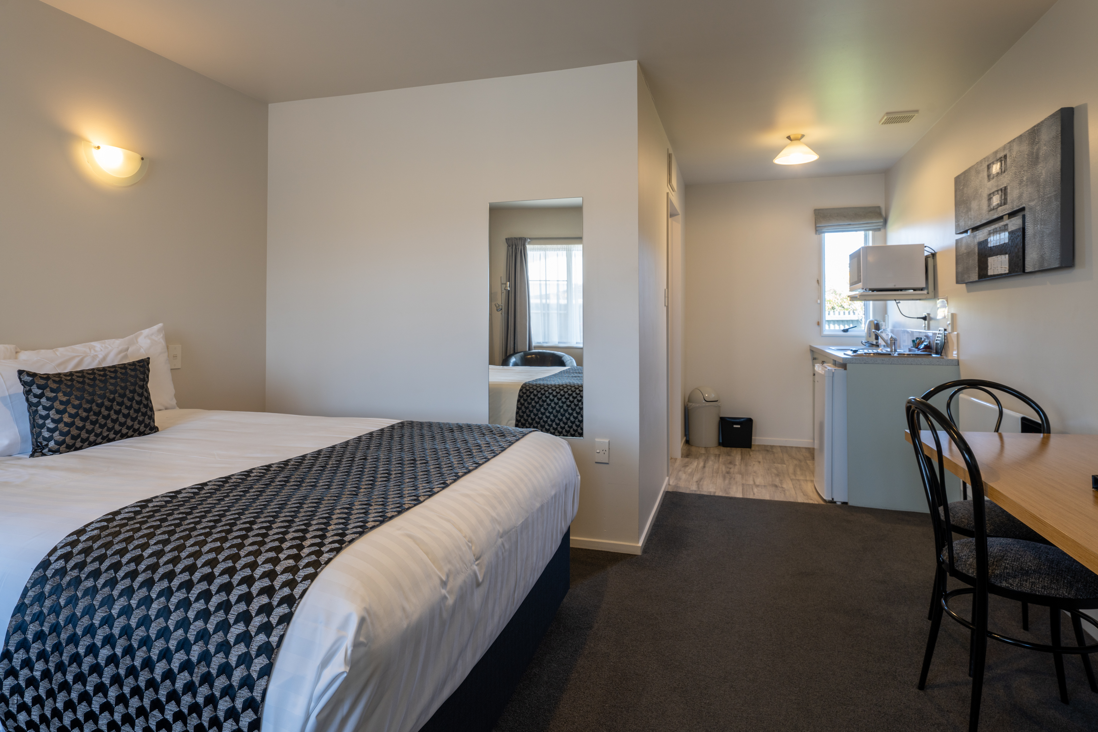 We have three comfortable standard studio suites, each with a super-king bed, a kitchenette with a refrigerator, double hob, microwave, toaster, electric jug, cooking utensils, etc.Two suites are wheelchair accessible with a European-style wet area shower in the separate refurbished bathroom.