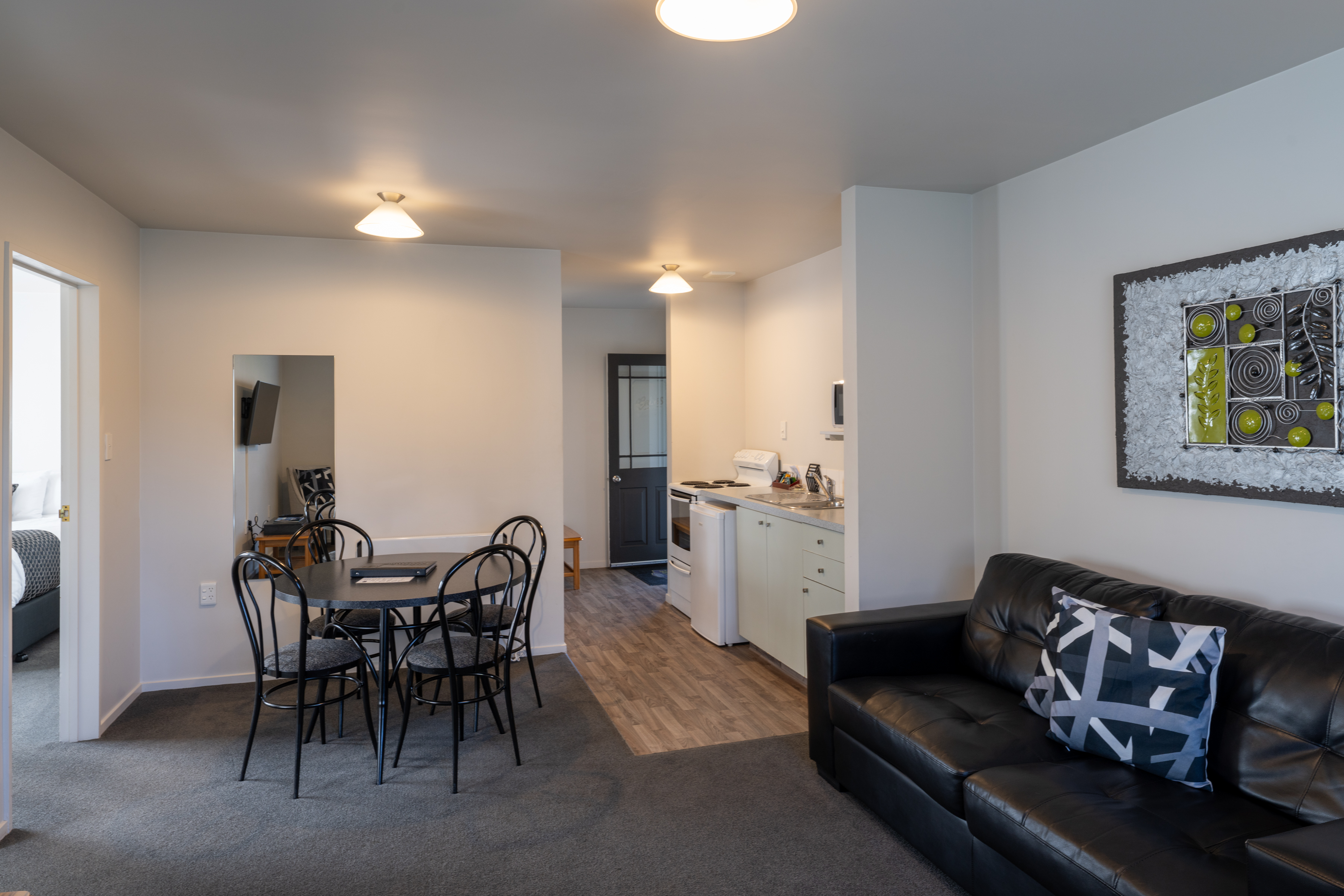Our spacious two-bedroom suites feature a lounge, full kitchen including oven, and separate bathroom with shower, with one apartment having a bath with shower over.