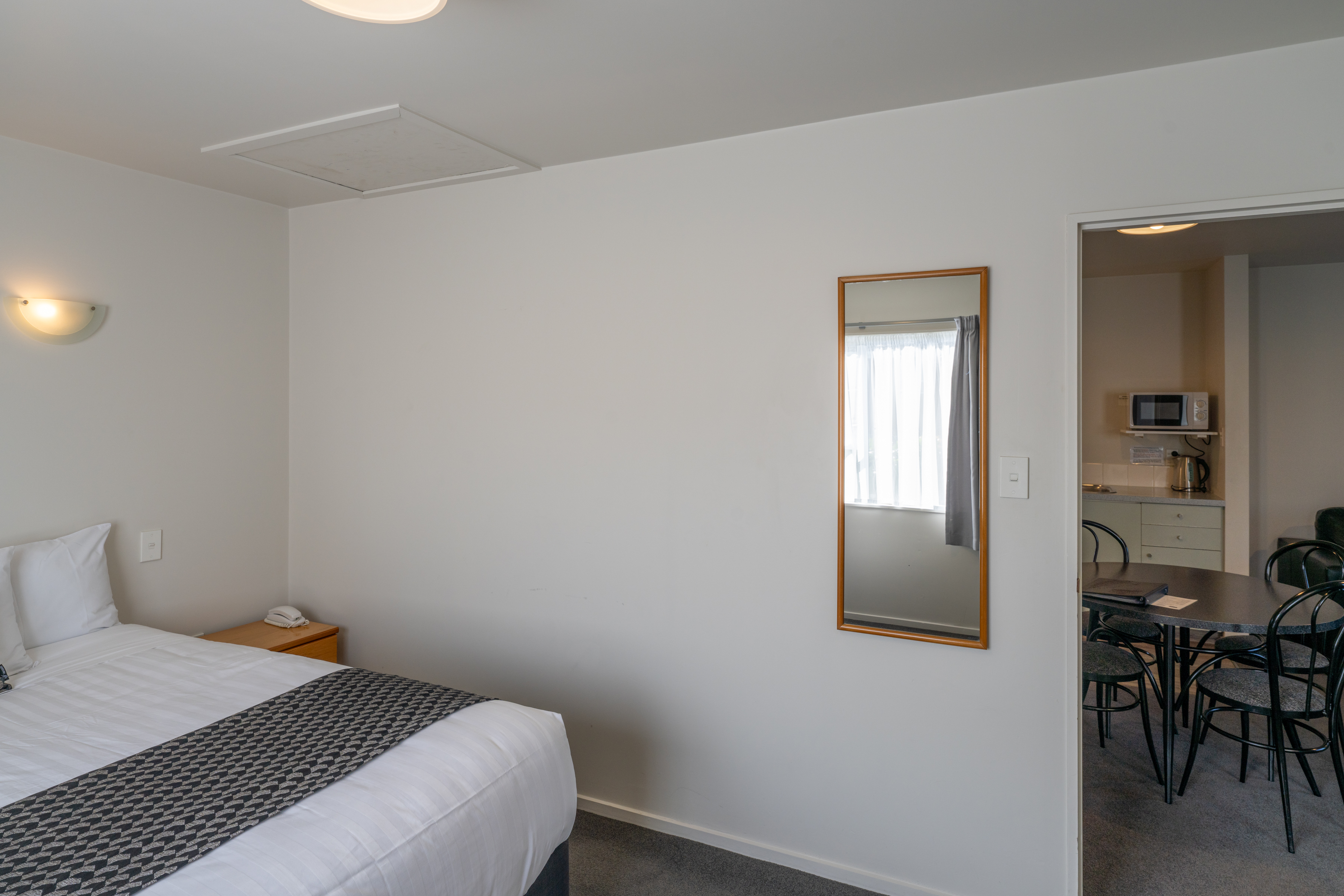 A spacious apartment-style suite that sleeps up to five guests, with a queen and single bed in the separate bedroom and a queen bed in the lounge. The kitchenette has a refrigerator, double hob, microwave, toaster, electric jug, kitchen utensils, etc, while the separate bathroom has a shower cubicle.